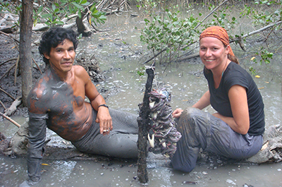 “These crabs live in the mangroves and Brazil has about 7,500 square metres of these highly productive intertidal forests. Under the canopy, the crabs dig two-metre-deep burrows. The fishers stick their arms or a hooked stick into the burrows to get them out, or they use tangle-nets. They have to protect their arms with gloves not because they are scared of the crabs, but because in the mud there are lots of sharp shells, and they can easily injure themselves - most fishers don't have any health insurance and can’t afford to lose income.”