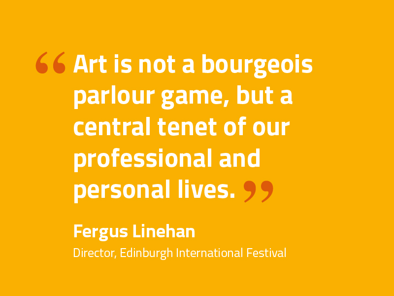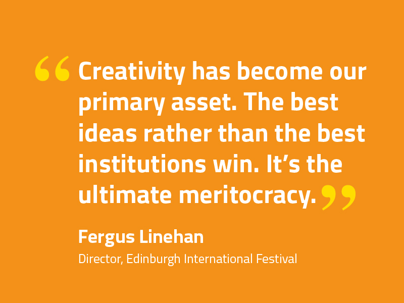 So who is doing it well? Linehan highlights a great early adopter, striking the right balance between art and creativity, as Manchester International Festival, which he says “established itself as a festival with an umbilical connection to the zeitgeist”. His praise of another festival supports his view that “Creativity has become our primary asset. The best ideas rather than the best institutions win. It’s the ultimate meritocracy.”