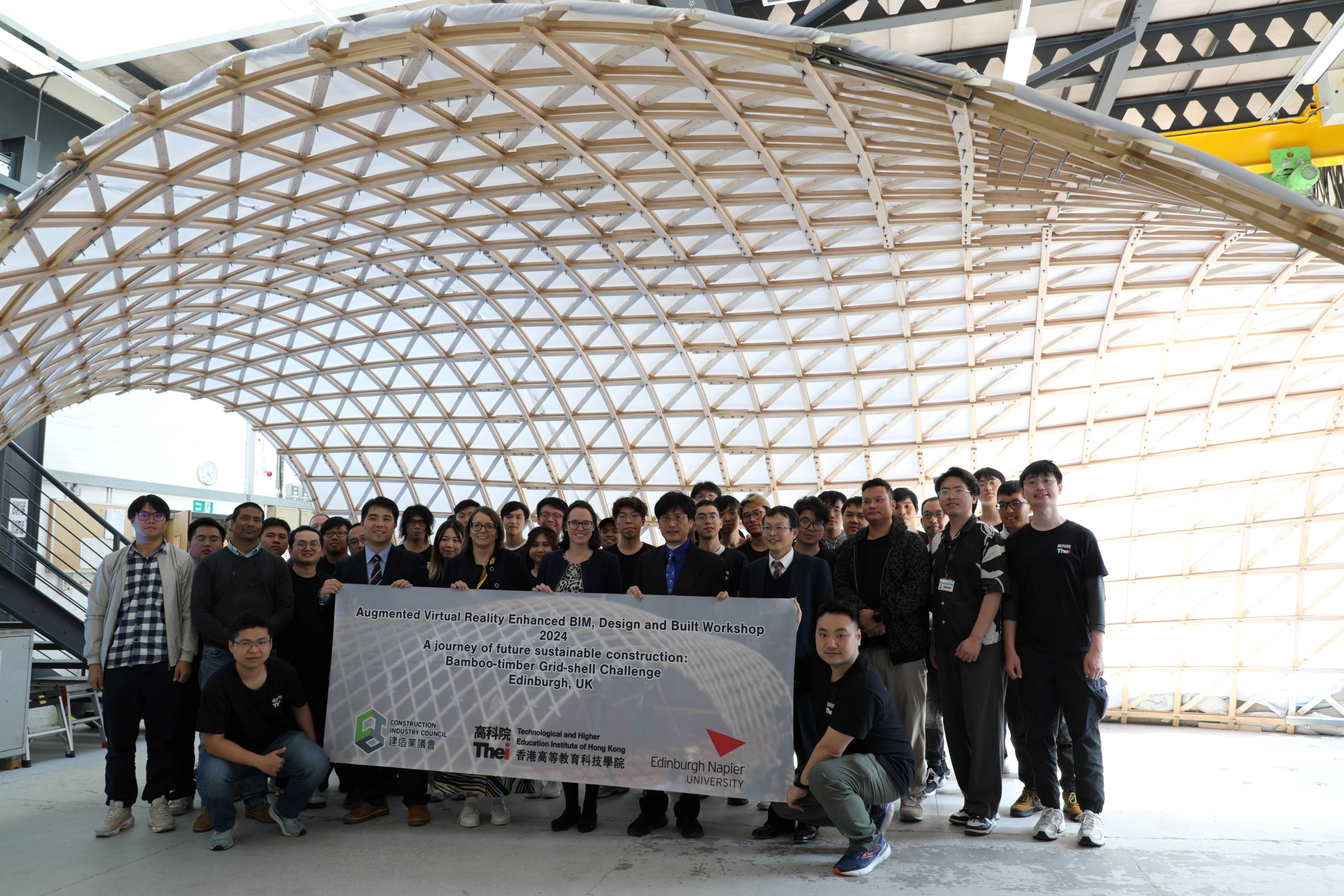 The 9x8 metre structure was put up in just four days by a team of 31 visiting students from the Technological and Higher Education Institute of Hong Kong (THEi) in an engineering lab at ENU’s Merchiston campus.