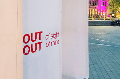 Tasked with raising awareness of the exhibition and its topics of mental health, the group of students devised three pieces of public art that highlighted the Out of Sight, Out of Mind programme to passers-by for one night only.