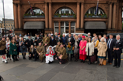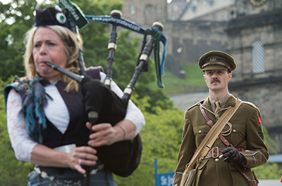 Organised by Wilfred Owen’s Edinburgh 1917-2017 – a committee consisting of representatives from Edinburgh Napier University, Scottish Poetry Library, Wilfred Owen Association, military charity Glen Art, Poppyscotland, and others - a unique re-enactment event took place at Waverley Station and along Princes Street this morning (26 June) as a programme of events to commemorate the centenary continued.
